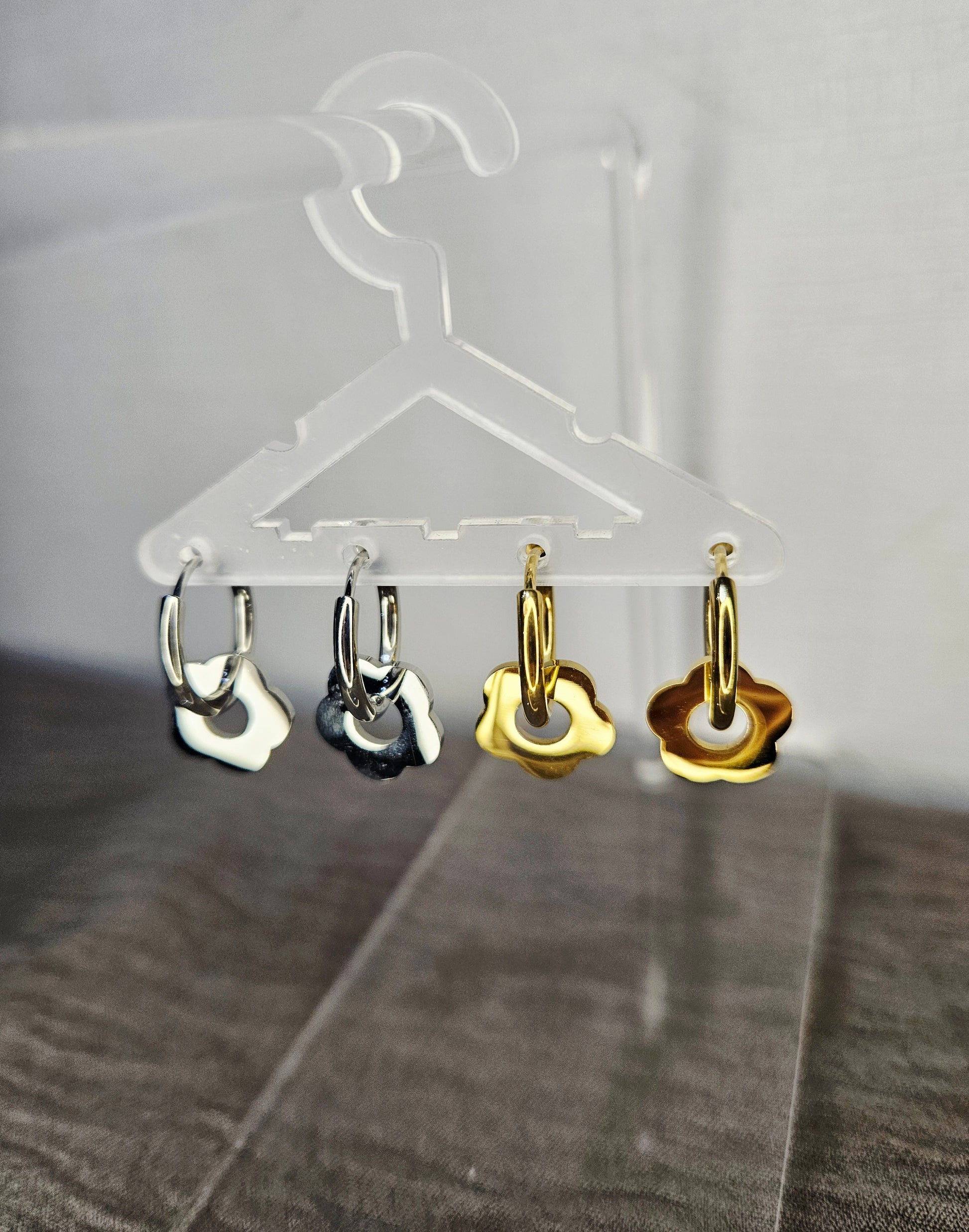 Stainless steel or stainless steel gold plated. Tarnish resistant, suitable for everyday wear.